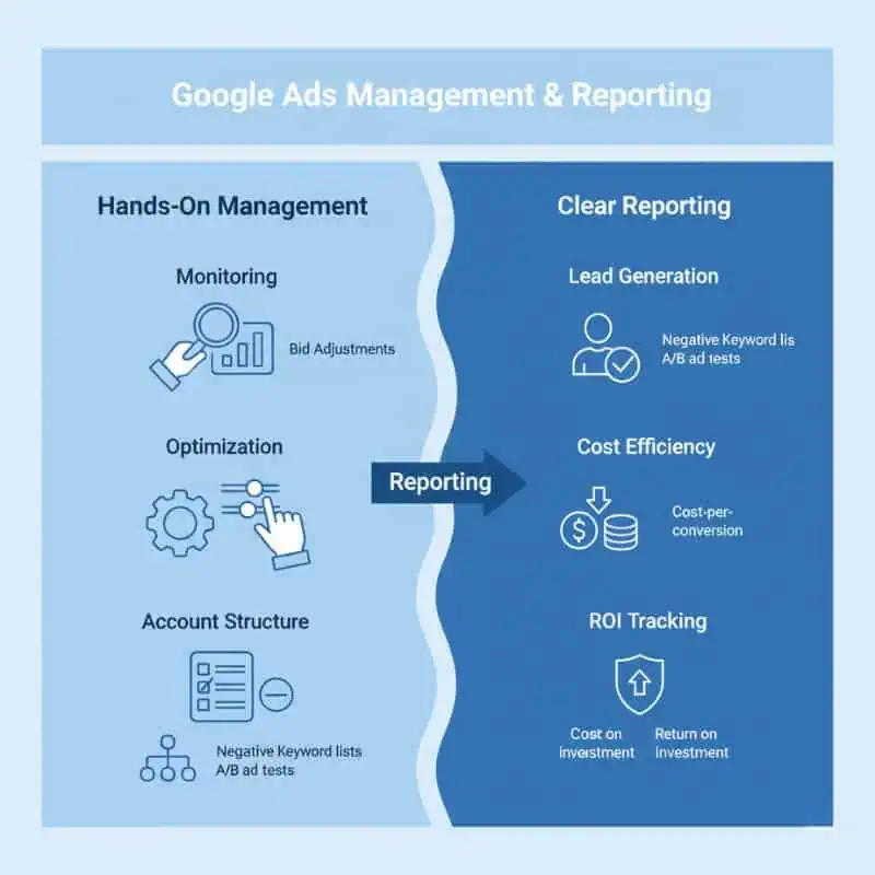 Dedicated PPC managers focus 100% on your campaign data, optimizing performance based on real results.